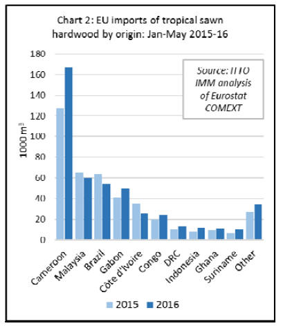 (+31% to 166,400 cu.m), Gabon (+20% to 50,200 cu.m),