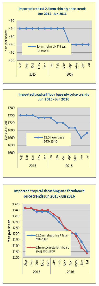 Japan’s first half 2016 plywood imports were down 6%