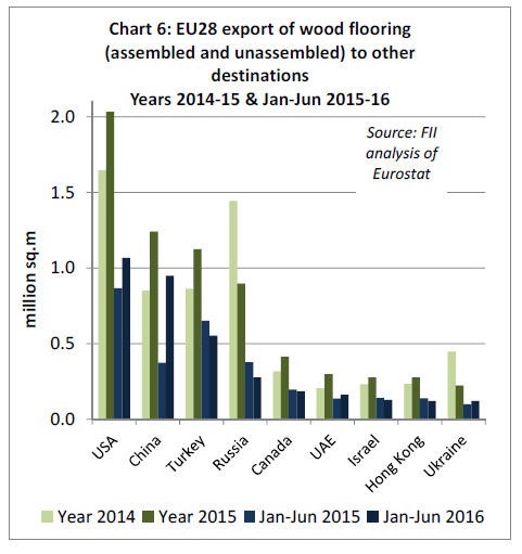 2014, EU wood flooring exports declined slightly in 2015,