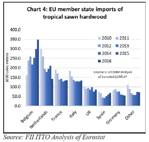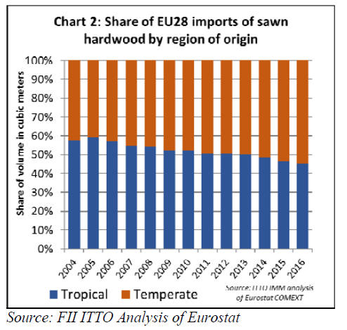 In 2016, EU imports of tropical sawn hardwood were 1.04