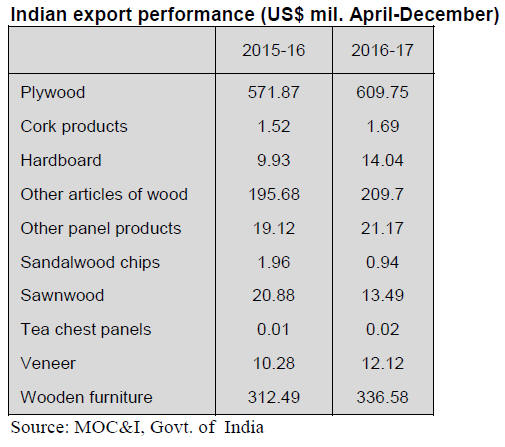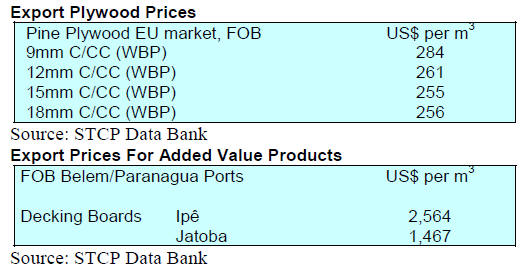 As for tropical plywood, exports increased significantly in