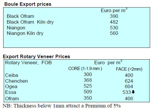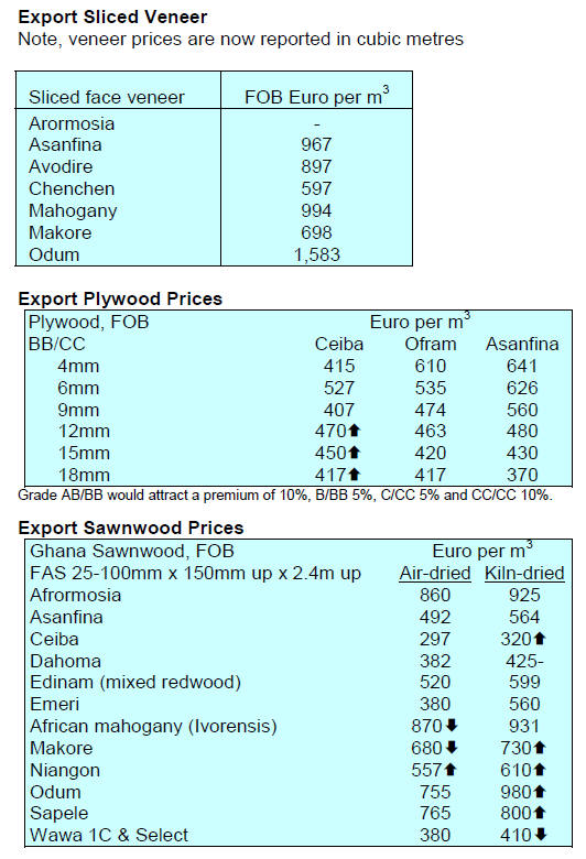 Tropical sawnwood exports fell 4% from 36,100 cu.m in