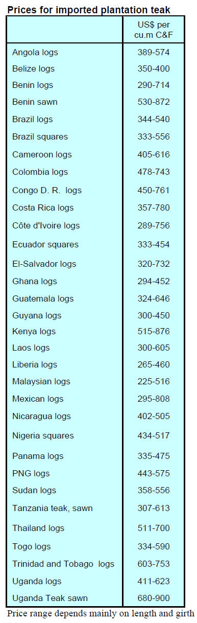 Plantation teak exports to the US