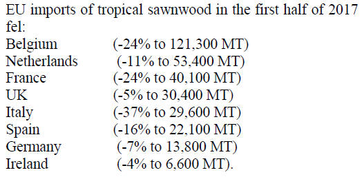 tropical logs from Equatorial Guinea (+10% to 5510 MT),