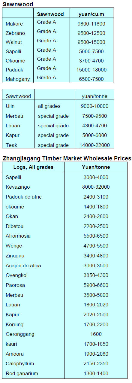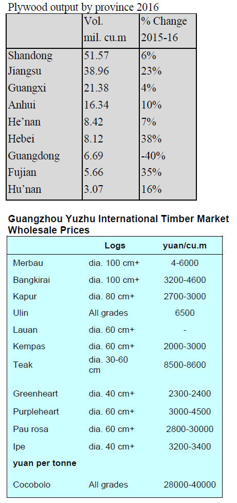 okoume (512,500 cu.m, 6.1%), North America hardwood