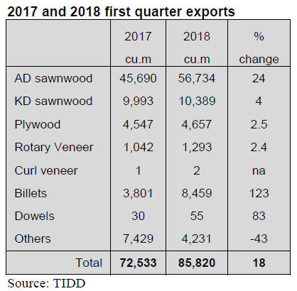 first quarter of 2018 amounted to 72,533 cu.m, 18% higher