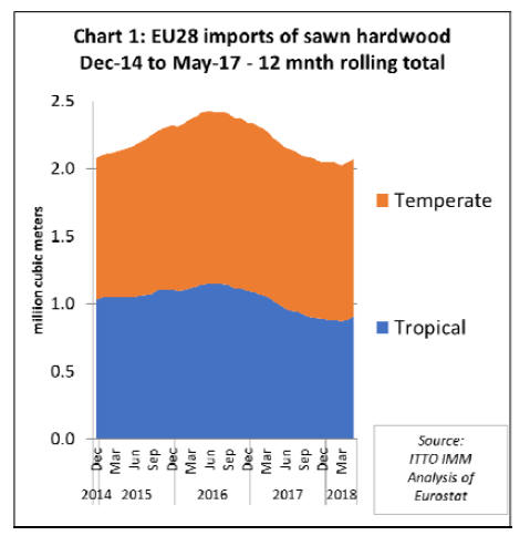 hardwood trade was down 3.4% to 18,397 cu.m,