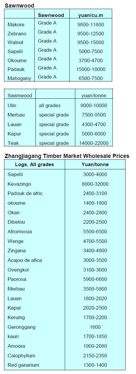 sawnwood from Japan fell 5% to US$247 per cubic metre.