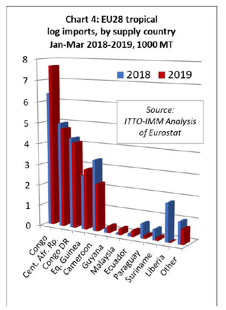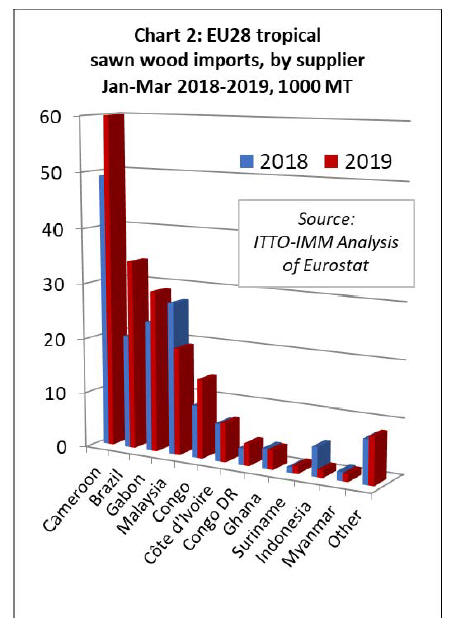 in 2018. Imports from Cameroon rose sharply, by 68% to