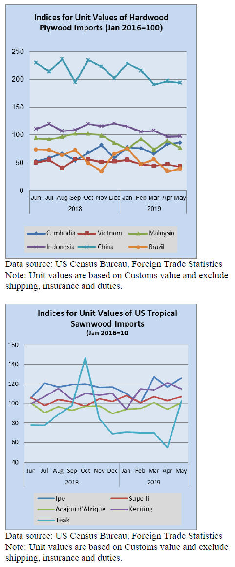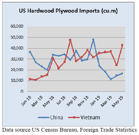 US imports of hardwood plywood rose by 7% in May, but