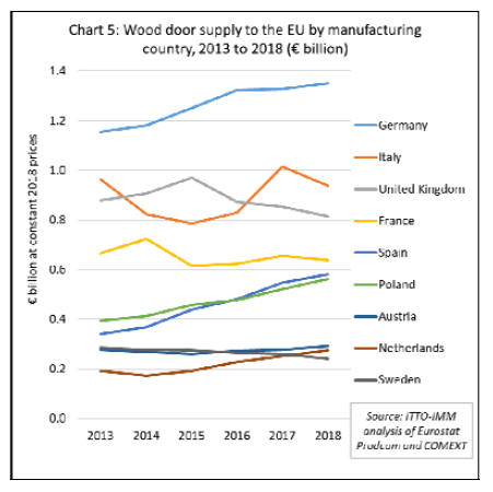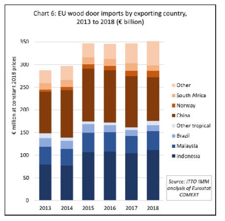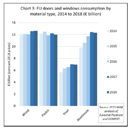 Overall the share of wood in the total value of EU door