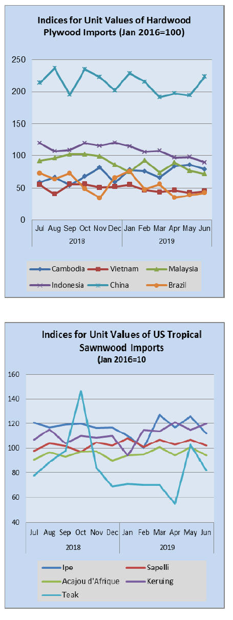 US imports of hardwood plywood were down 5% in June,