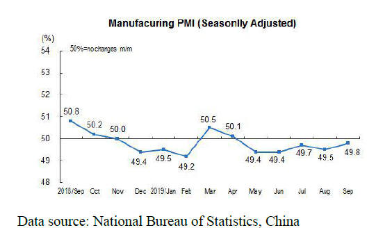 China¡¯s official manufacturing Purchasing Managers¡¯ Index inched up in