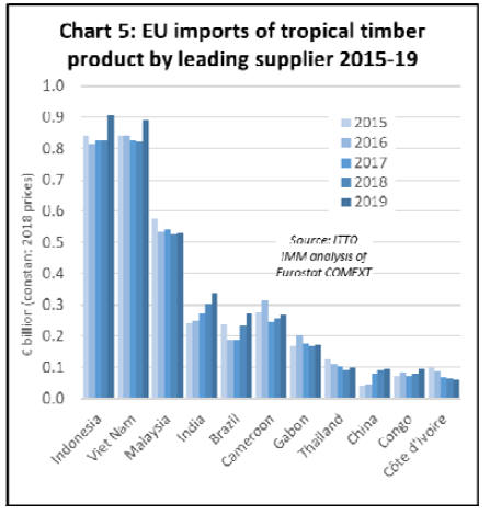 sawnwood. EU imports from Côte d'Ivoire also continued