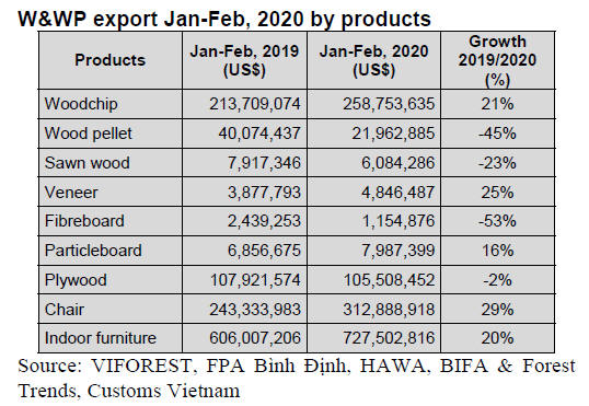 exports (-34.6%), clothing (-14.7%) and wood products (-