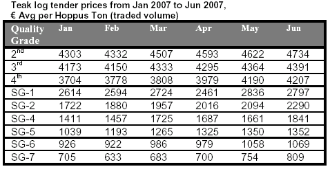 Sipo and sapele logs were in demand for all markets and prices for these species were higher. For