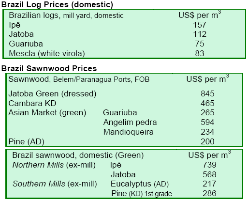 No price changes were reported for sawn lumber. Demand