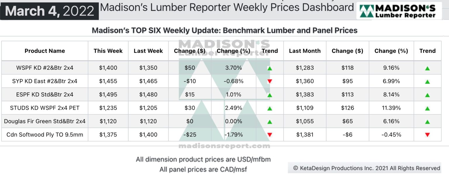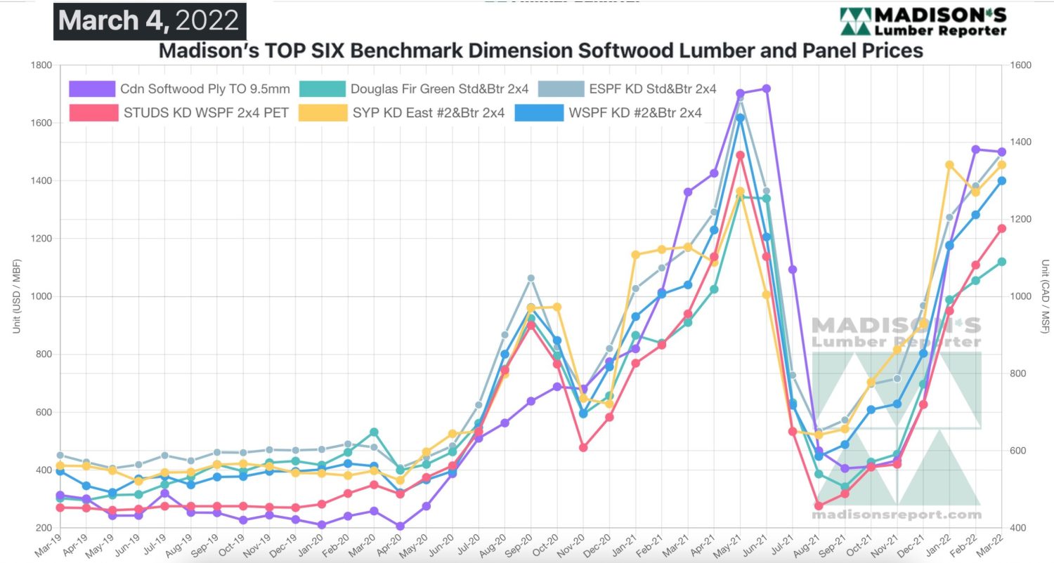 Madison’s Benchmark Top-Six Softwood Lumber and Panel