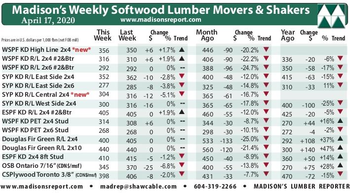 Canada softwood and panel markets - week 14, 2020 (Apr