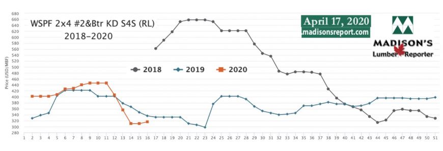 Last week’s Western S-P-F 2×4 prices is down -$66, or -18 per cent,