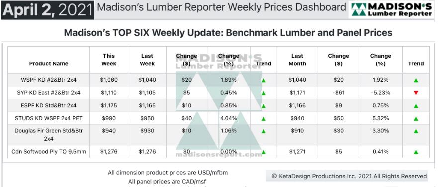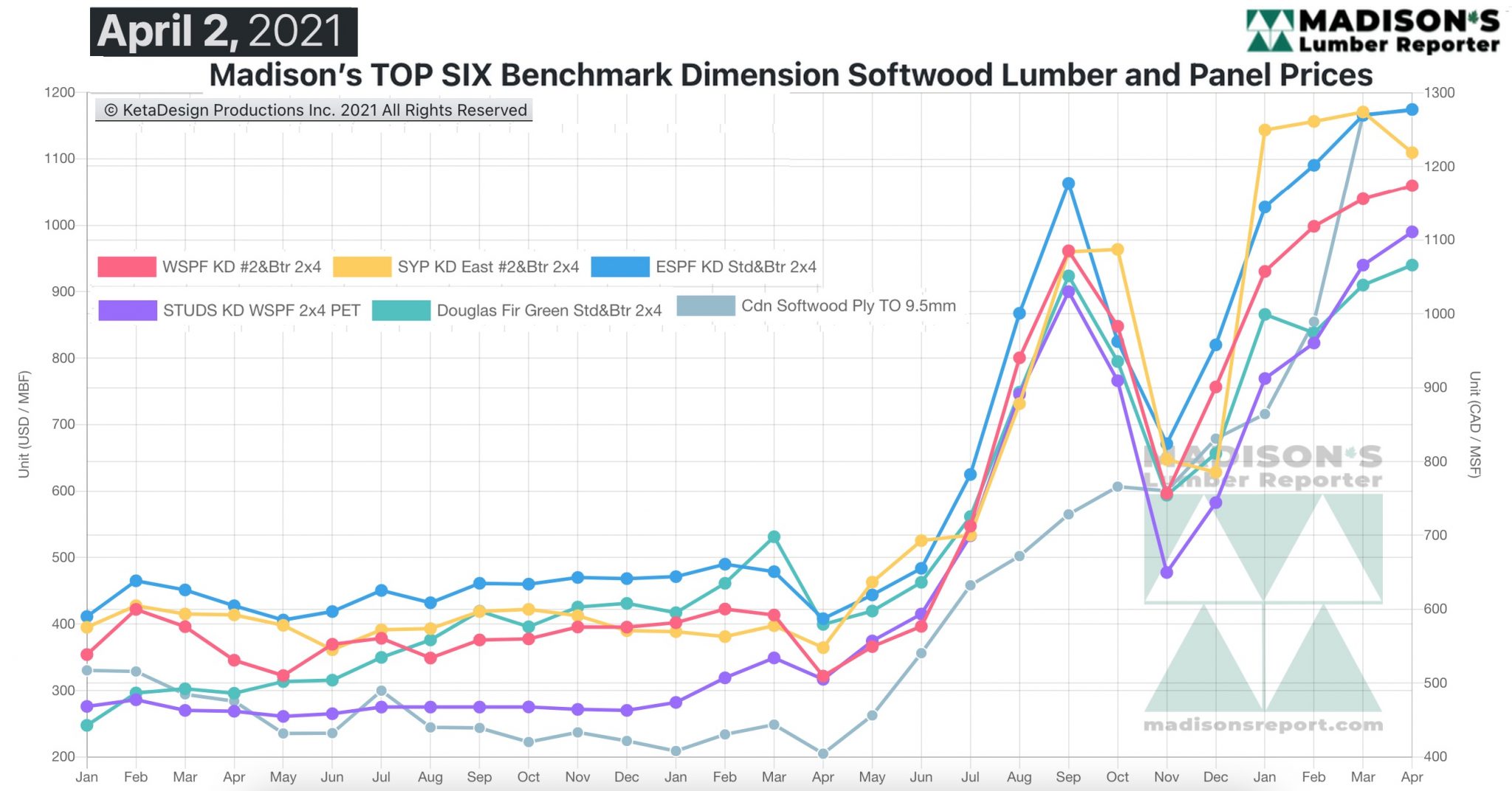 2, 2021, the wholesaler price of benchmark softwood lumber commodity