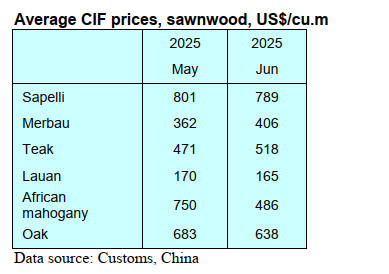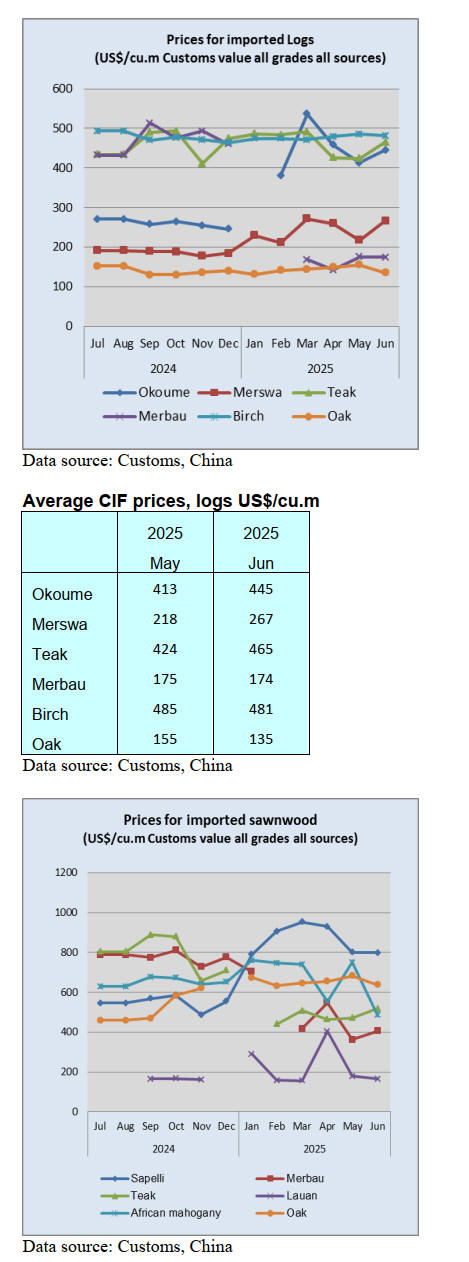 logs declined 6% to US$123 (CIF) per cubic metre over