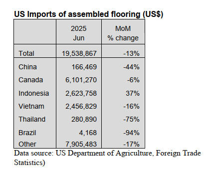 Imports of assembled flooring fell for the third