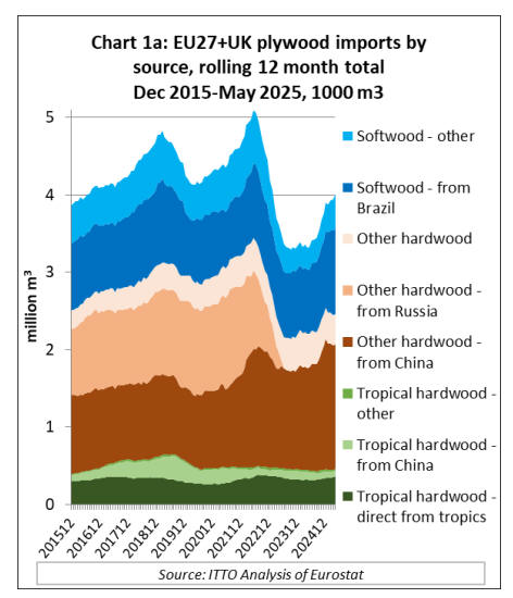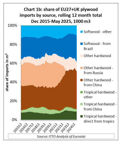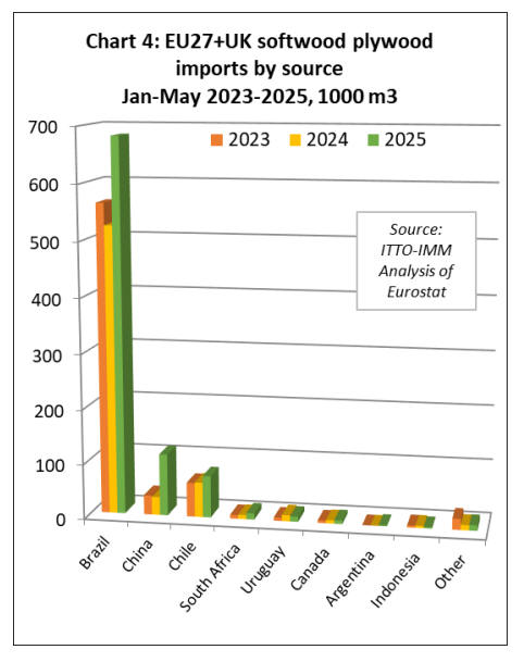 Brazil, to 9,300 cu.m, while eucalyptus plywood imports