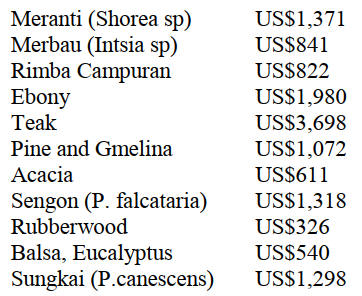 Local sawn logs are trading at 60,000 CFA/pcbm and
