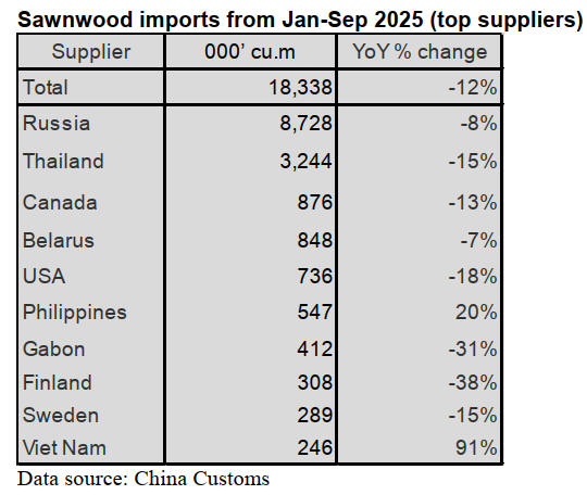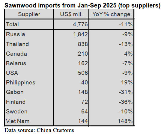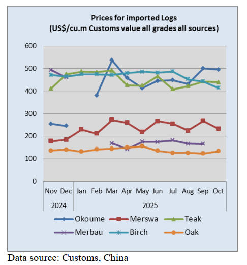 The CIF prices for tropical sawnwood fell 1% to US$287
