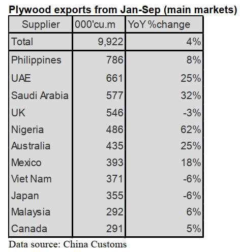 China’s plywood exports to UAE and Saudi Arabia, as the