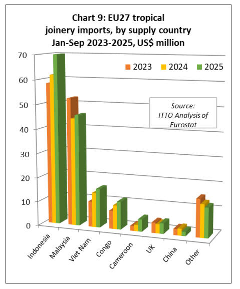 However, EU27 import value of joinery products made