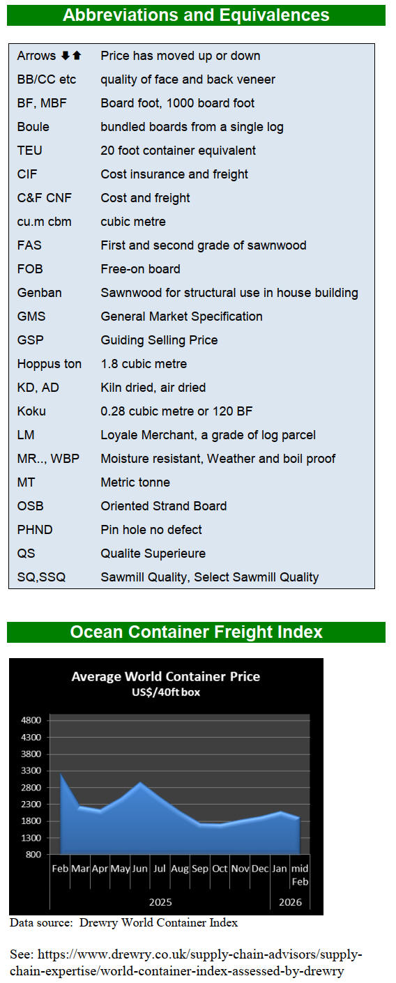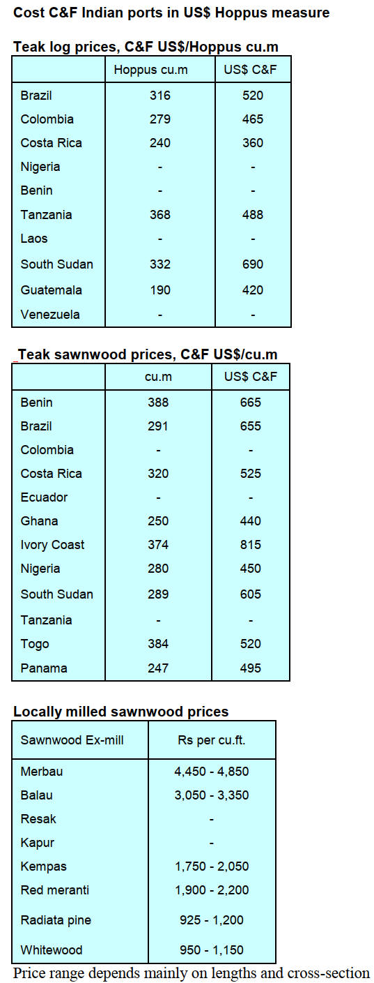 prices due to extremely limited log supply. Heavy rains