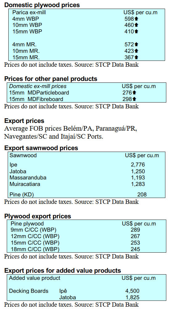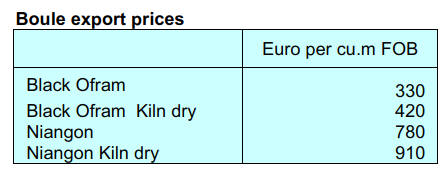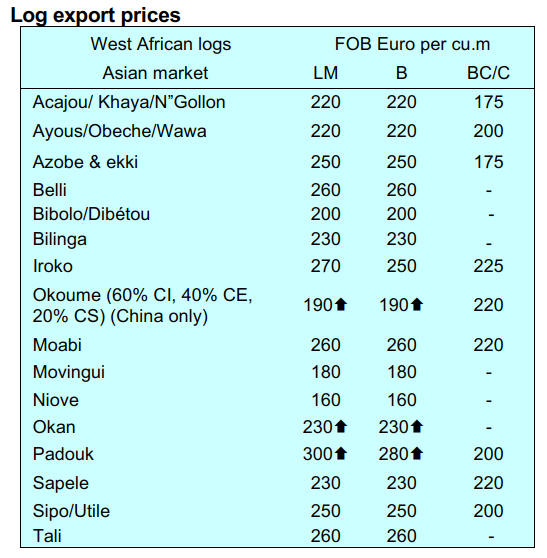 price increases for both logs and sawnwood reflecting