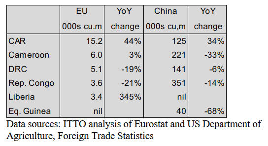 China and the EU are the main importers of tropical logs.