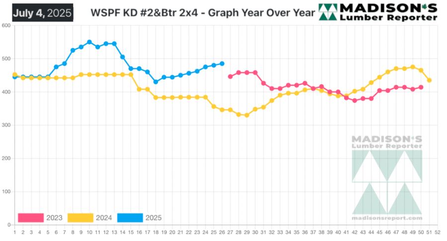 Western Spruce-Pine-Fir 2×4 #2&Btr Kd (Rl) For The Week Ending July 4, 2025