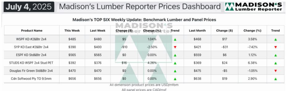 In the week ending July 4, 2025, the price of benchmark softwood lumber item