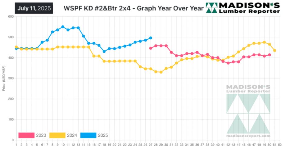 Western Spruce-Pine-Fir 2×4 #2&Btr Kd (Rl) For The Week Ending July 11, 2025