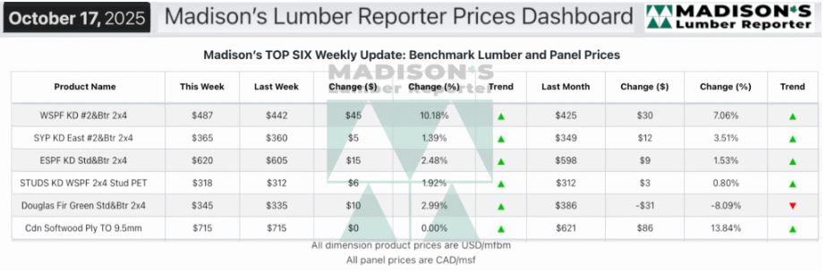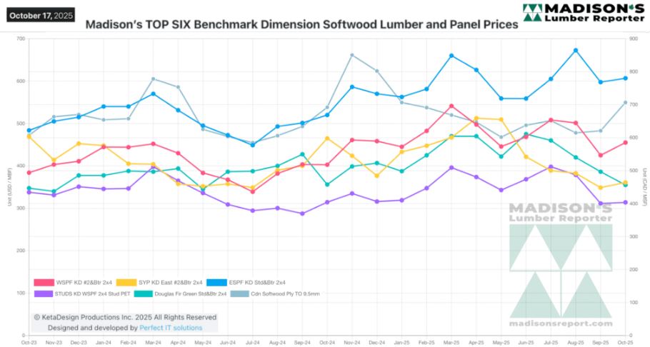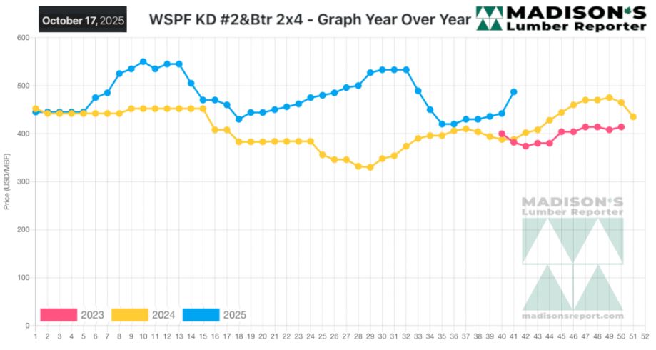 In the week ending October 17, 2025 the price of Western Spruce-Pine-Fir 2×4