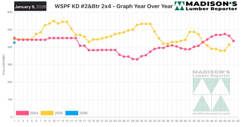 In the week ending January 09, 2026 the price of Western Spruce-Pine-Fir 2×4