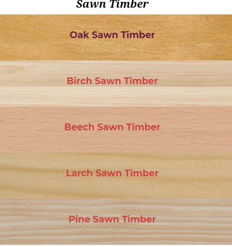 Wood species: oak, beech, birch, larch, pine sawn timber. |