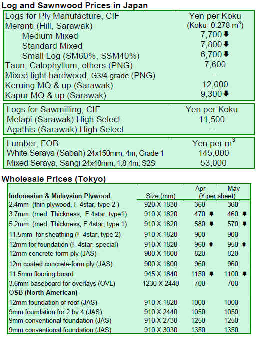 Japan Lumber Journal (JLJ) noted prices for plywood