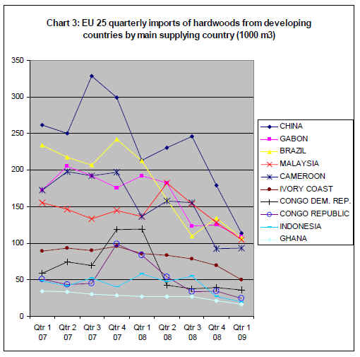 2009. A big decline in EU-25 hardwood imports from