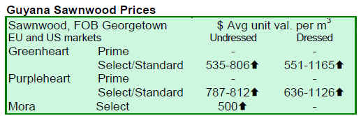 sawnwood (1165/806) and purpleheart (1126/806) have