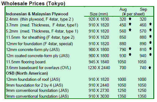 In July 2009, Japan’s plywood imports fell 26.6% by