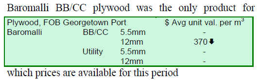 Prices for wood products from Guyana remain generally