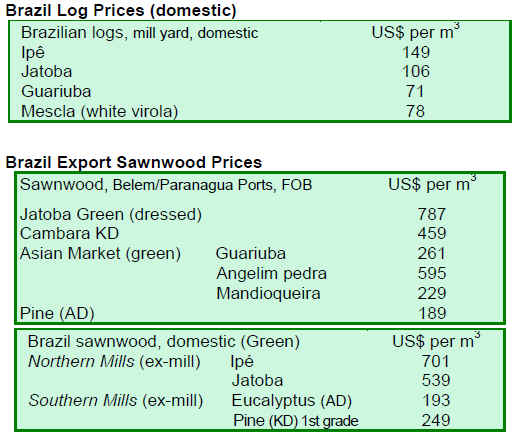 sawnwood prices eased.