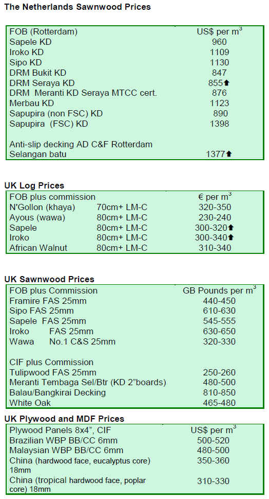 at around US$400/cu.m CIF UK for 18 mm product,