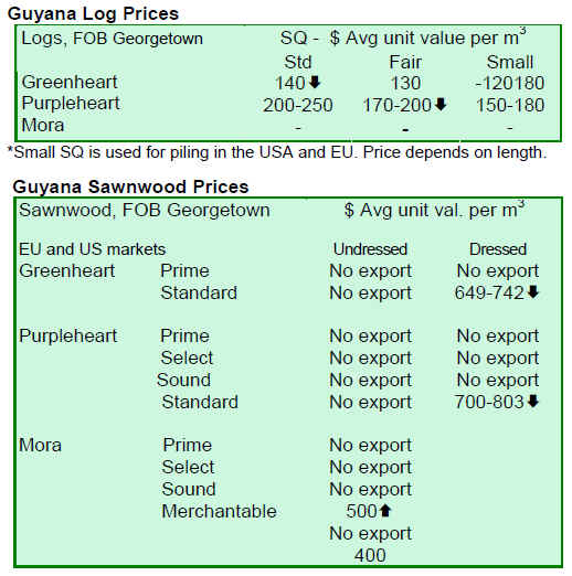 undressed (rough sawn) Greenheart and Purpleheart, this