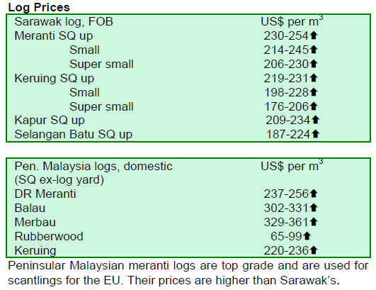 with Asian and Indian buyers continues to be brisk. Logs